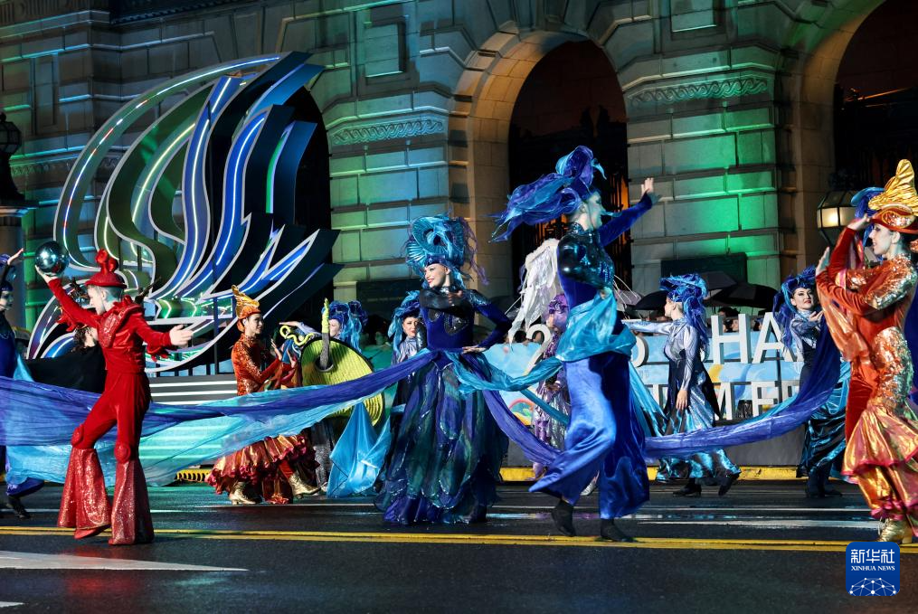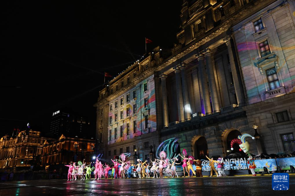 9月13日,上海旅游节花车巡游活动上,演员在外滩建筑前表演。