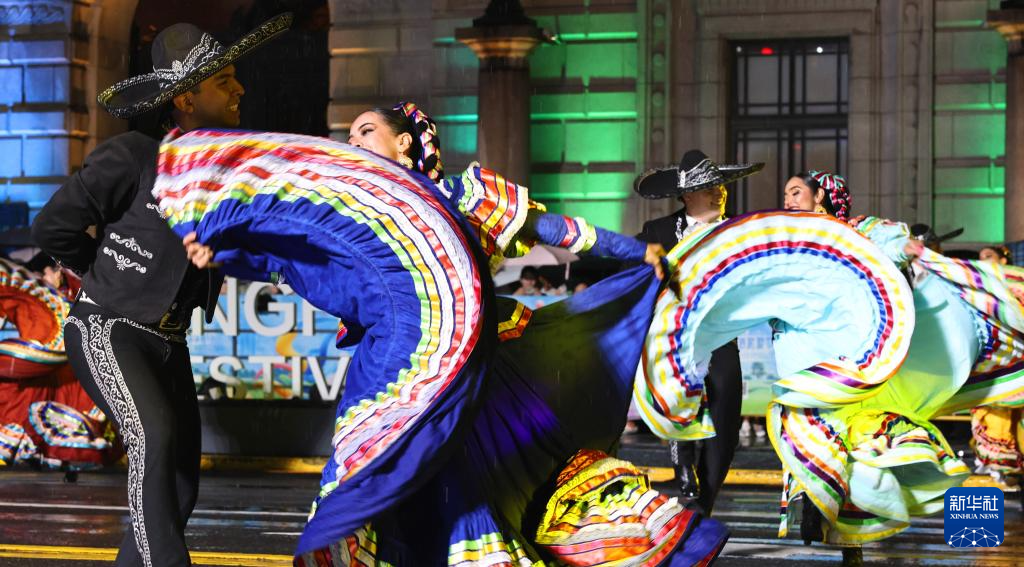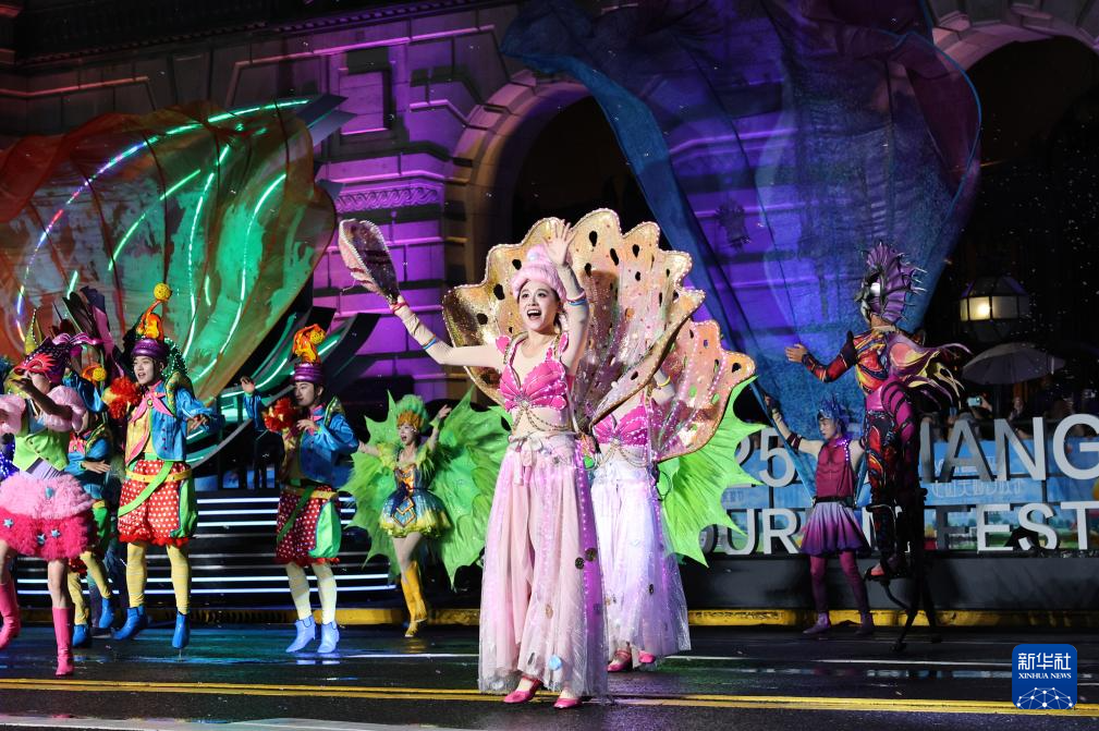 9月13日,来自墨西哥的舞蹈家在上海旅游节花车巡游活动上表演。