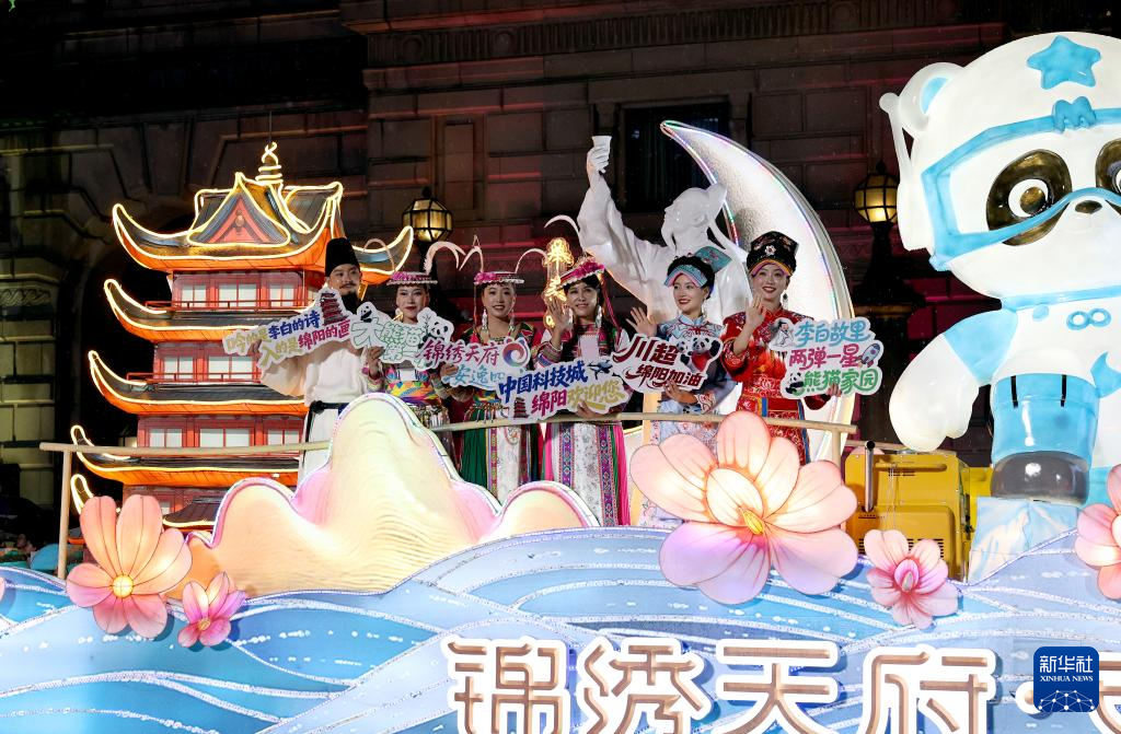 9月13日在上海旅游节花车巡游活动上拍摄的四川省绵阳市旅游主题花车。