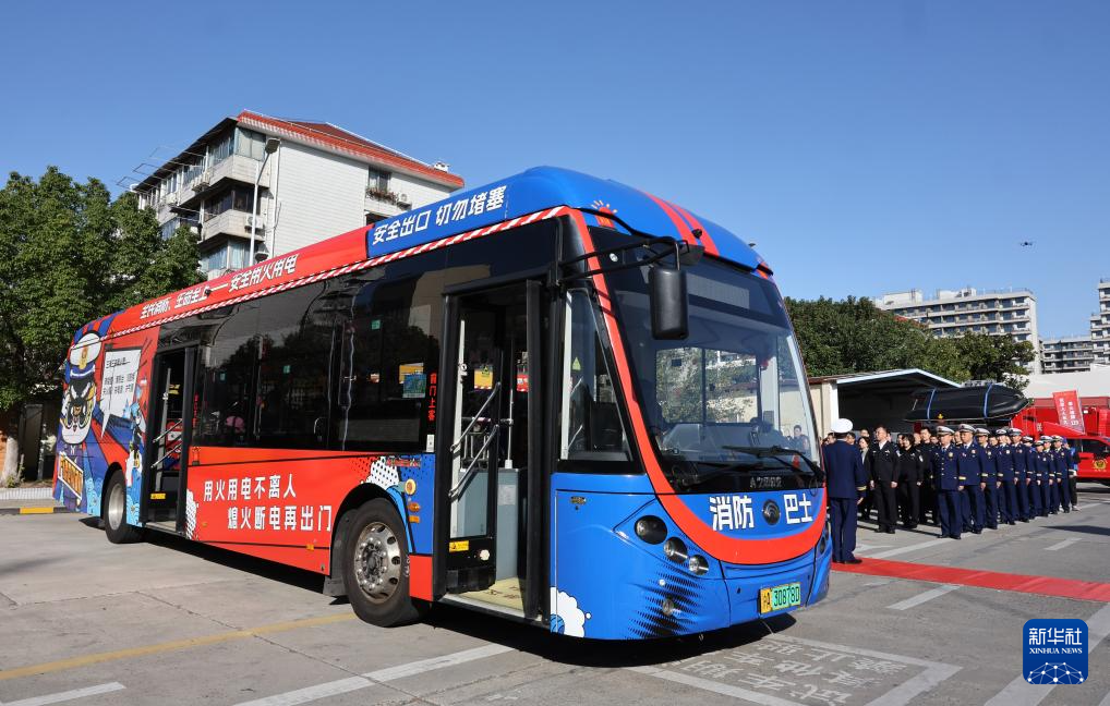 这是11月18日在活动现场拍摄的消防安全主题巴士。