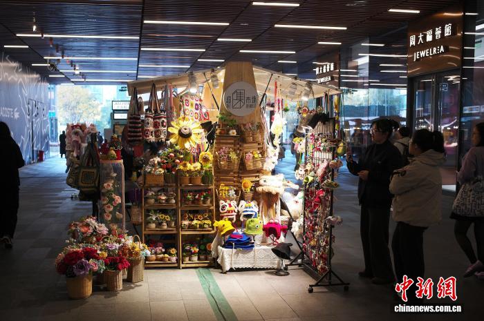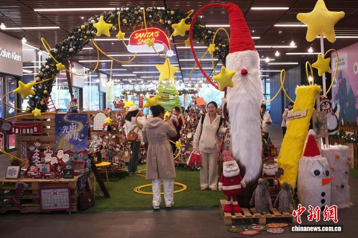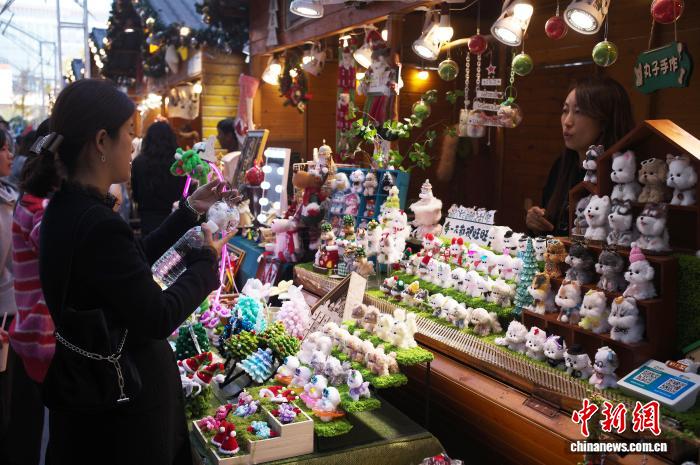 11月30日,游客在上海虹桥新天地光影市集购物。中新社记者殷立勤 摄