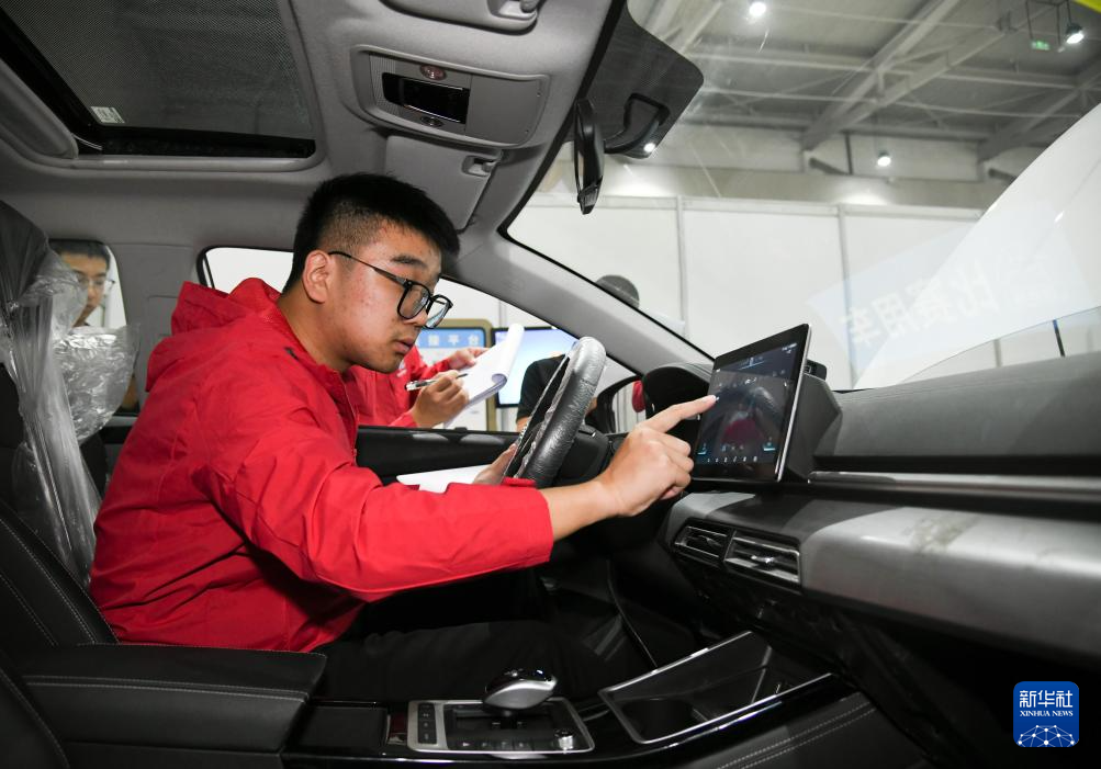10月16日,参赛选手在陕西省2024职业技能大赛新能源汽车智能化技术赛项比赛中。