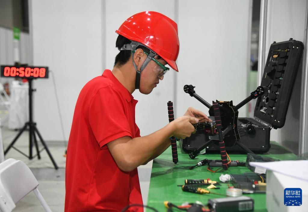 10月16日,参赛选手在陕西省2024职业技能大赛无人机装调检修赛项比赛中。