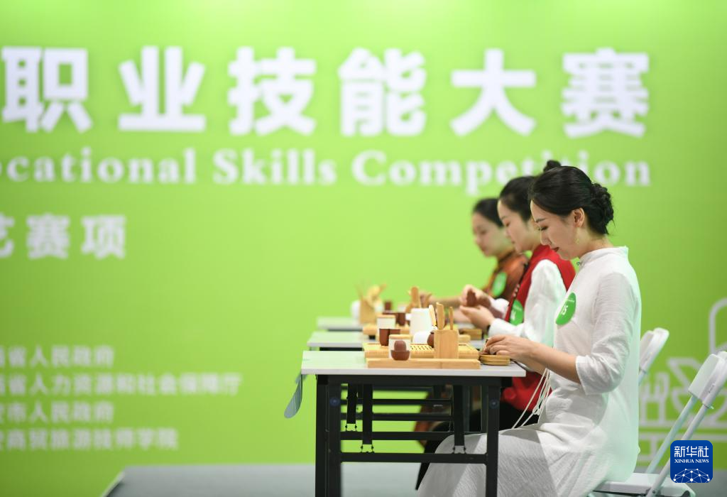 10月16日,参赛选手在陕西省2024职业技能大赛茶艺赛项比赛中。