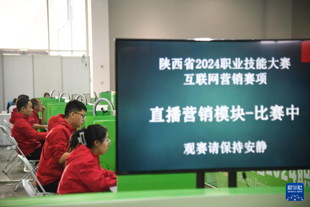 10月16日,参赛选手在陕西省2024职业技能大赛互联网营销赛项比赛中。