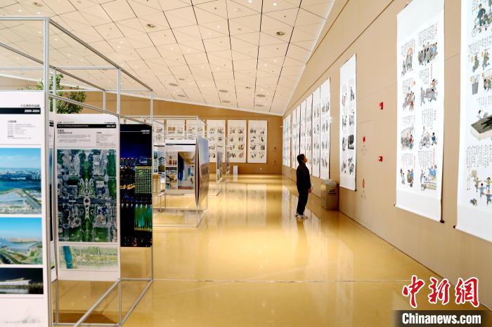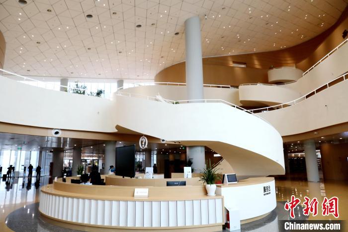 3月11日,陕西西安,市民在书院内参观展览。作为西安新地标的长安书院,已于1月正式向市民群众开放,日可接待读者1.5万人次,馆内集图书借阅、研学教育、美学生活、文化活动、互动体验为一体,为民众带来全新的文化体验。中新社记者张远 摄