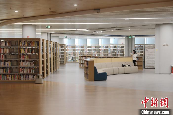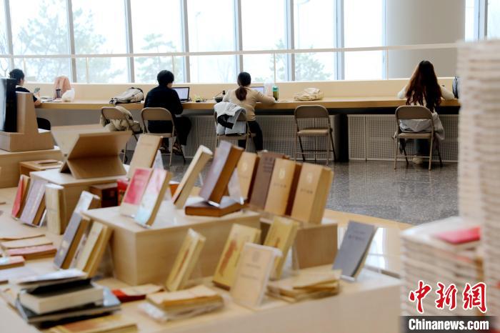 3月11日,陕西西安,民众在书院内学习。作为西安新地标的长安书院,已于1月正式向市民群众开放,日可接待读者1.5万人次,馆内集图书借阅、研学教育、美学生活、文化活动、互动体验为一体,为民众带来全新的文化体验。中新社记者张远 摄