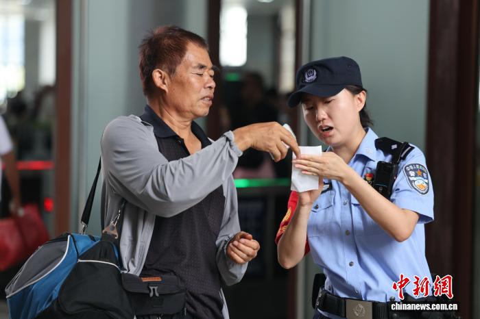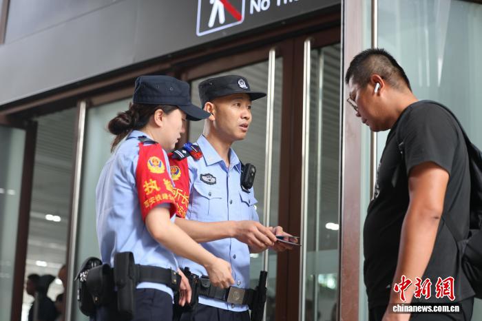 2025年暑运启动以来,西安铁路公安局西安公安处宝鸡南站派出所迎来旅游、探亲、学生等多重客流叠加高峰。为全力保障旅客平安顺畅出行,派出所全警下沉一线,围绕治安管控、安检查危、便民服务等工作精准发力,为旅客营造了安全有序的出行环境。图为民警在核实旅客乘车证件。张鑫摄