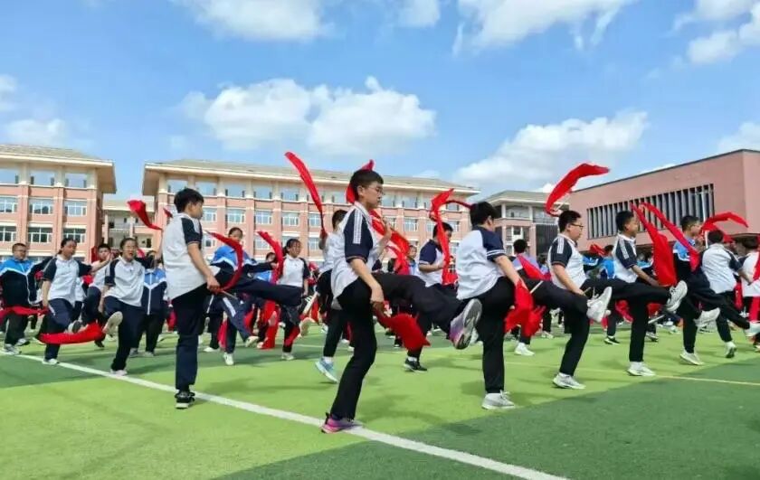为了全面展示半年来的课间操训练成果,近日,榆林市横山区十余所中小学的5000余名学生,正利用课余时间紧张排练。他们红绸翻飞、鼓槌起落,每一个动作都凝聚着汗水与专注,是横山区将国家级非遗“横山老腰鼓”深度融入教育体系的成果展现。这不仅是对传统艺术规模的突破,更是文化基因在新一代心中扎根的实践。