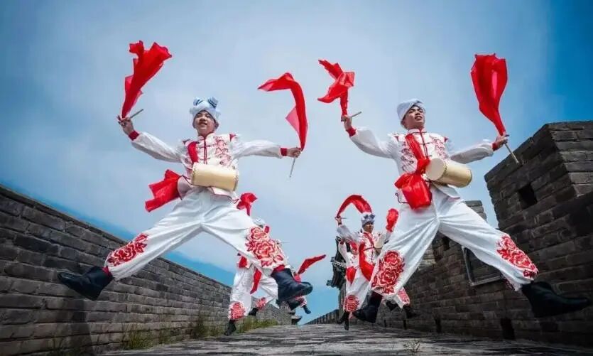 活化利用是非遗传承关键。横山老腰鼓近年来频频亮相国际国内重大场合,如参与新中国成立70周年庆典、建党百年文艺演出、中亚峰会、中非论坛等,还赴德国、韩国等进行文化交流。线上传播成绩同样突出,2024年春节,老腰鼓展演全网点击量突破1.2亿次,吸引大量游客赴榆林体验,实现了“文化引流、经济增效”,让横山老腰鼓在新时代焕发出新的生机与活力。