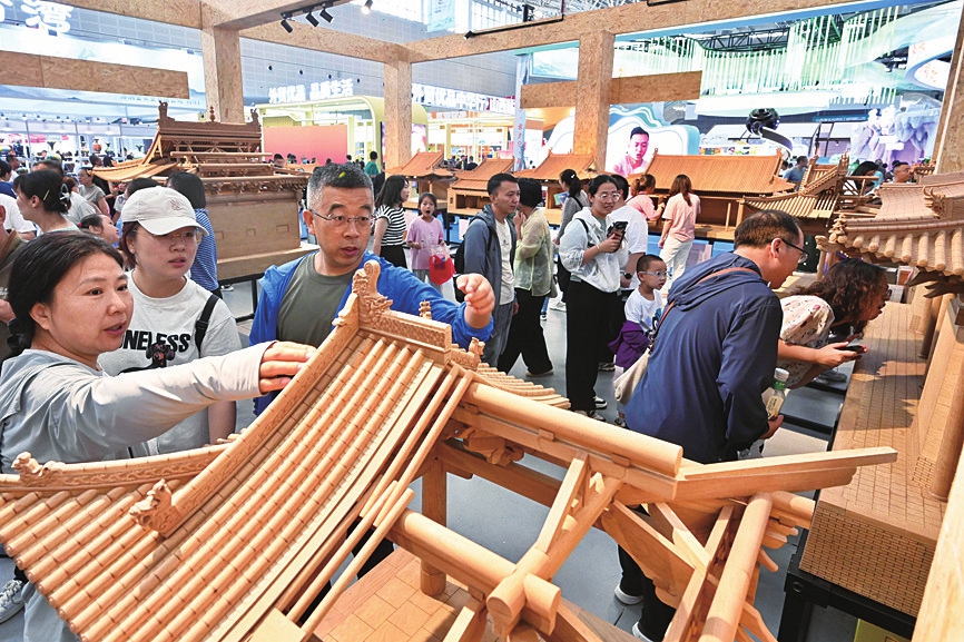 晟龙古建模型展区,古色古香的古建模型吸引游客的目光。记者杨晨玉摄