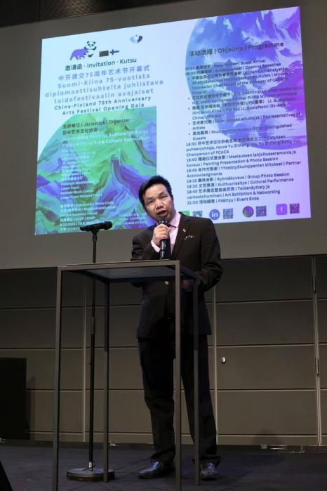 中新网山西新闻8月27日电为庆祝中芬建交75周年,一场跨越东方与北欧的艺术盛会——中芬建交75周年艺术节当地时间8月23日在芬兰首都赫尔辛基音乐厅隆重开幕。本次艺术节由芬兰前总理、前议长,现国家艺术博物馆主席马蒂·万哈宁倡议发起,中国驻芬兰公使衔参赞陈会新出席开幕式并致辞,UPM等企业领袖及各界名人齐聚盛会。