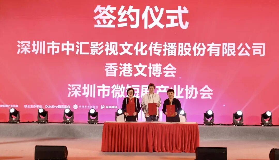 深圳微短剧产业协会与中汇影视、香港文博会组委会达成产业合作与资源协同签约,进一步完善产业生态。