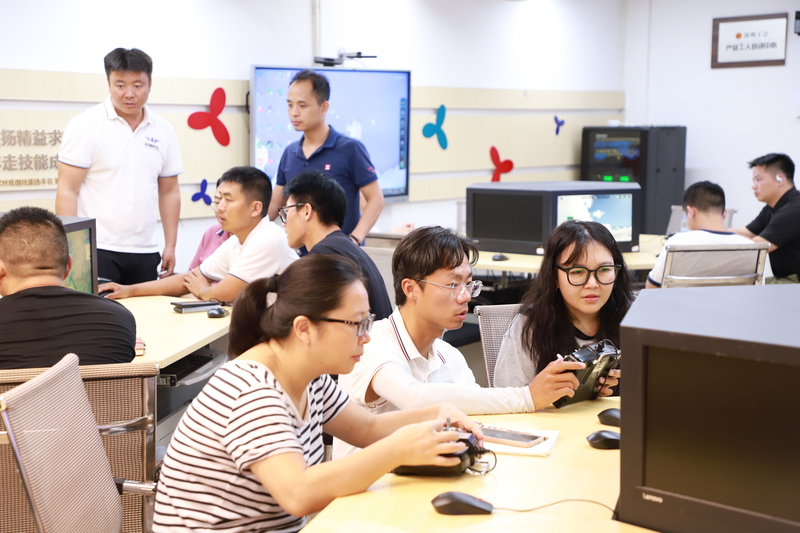 ▲龙华区福城街道章阁社区党群服务中心的AI夜校举办无人机模拟飞行训练课课程