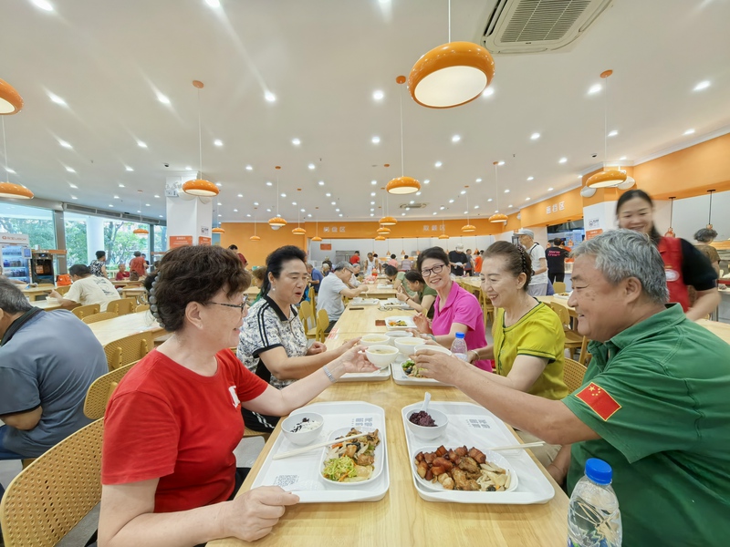 中午11点半,福田区梅林街道梅林一村党群服务中心的社区食堂外已排起长队。实惠可口的现做餐食,使其成为周边居民和上班族的用餐首选,就餐者络绎不绝。食堂日均接待约1500人次,以服务老年人为主。同时,中心通过优化菜品、分时就餐等方式,也吸引了不少年轻上班族和青少年前来。