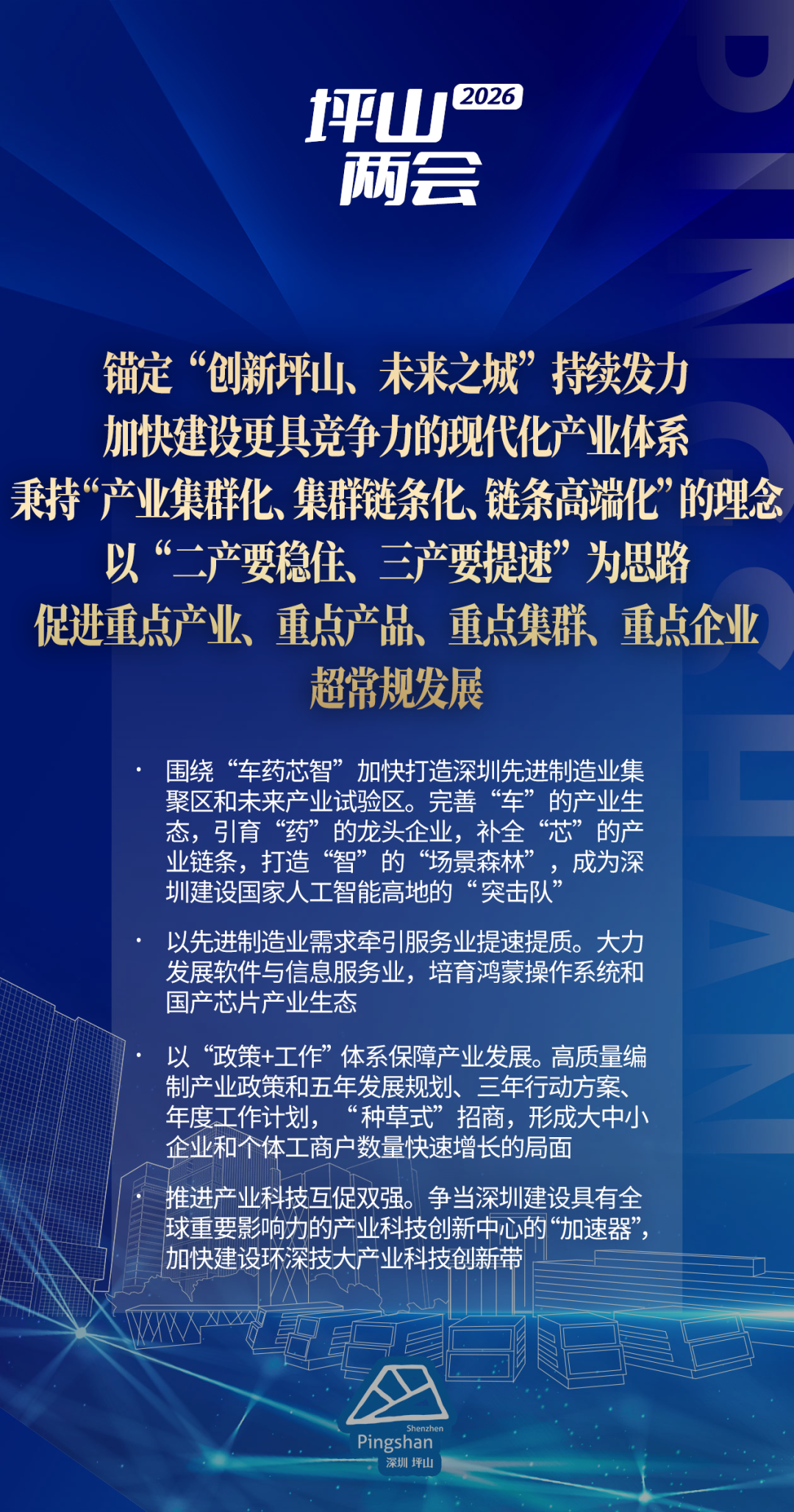 坪山以经济之“进”筑牢高质量发展之基,以产业之“强”锻造高质量发展硬核支撑,以 改革之“深”激活高质量发展内生动力,以开放之“广”拓展高质量发展战略空间,以 功能之“优”展现高质量发展潜力魅力,以民生之“暖”绘就高质量发展幸福底色。