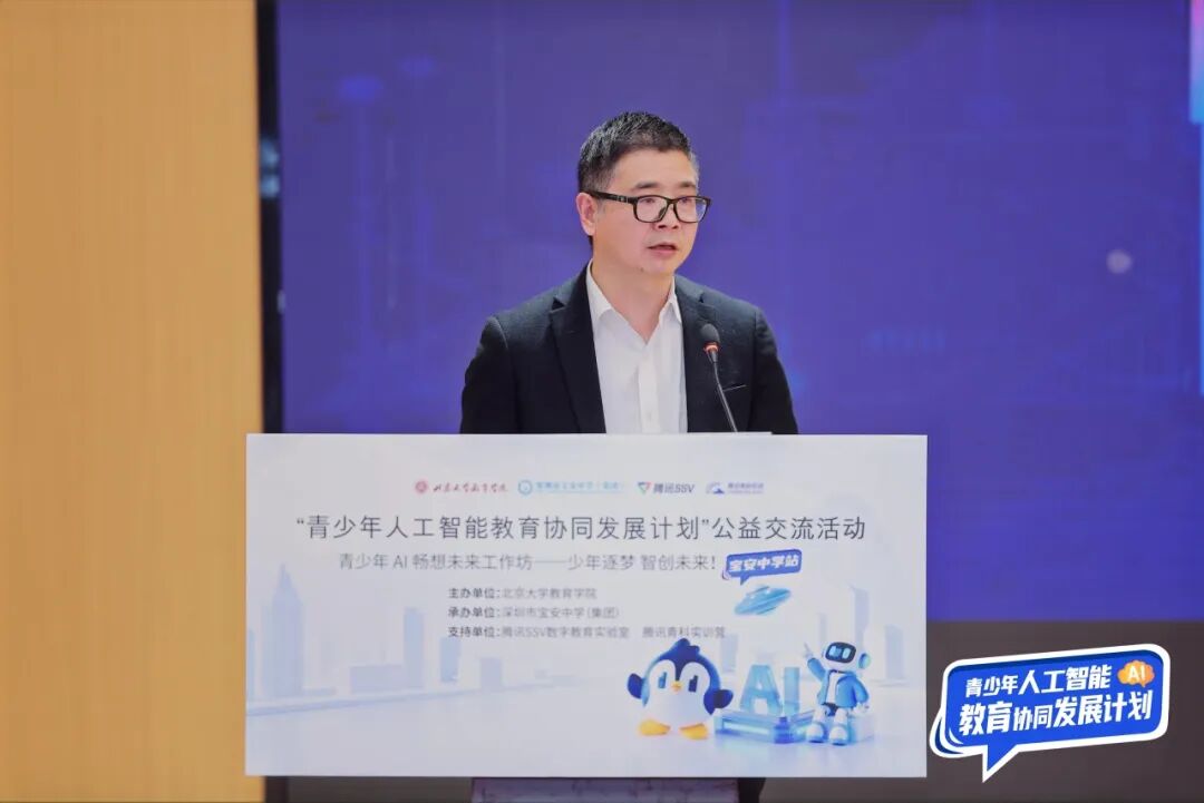 AI畅想未来营的圆满结营,是“青少年人工智能教育协同发展计划”在深圳落地的重要成果,更是“政—校—企—研”协同育人模式的生动实践。依托宝安中学(集团)优质的科技教育平台,整合北京大学学术资源与腾讯技术力量,本次工作坊有效推动了AI教育普惠,为深圳青少年搭建了探索未来、施展才华的广阔舞台。