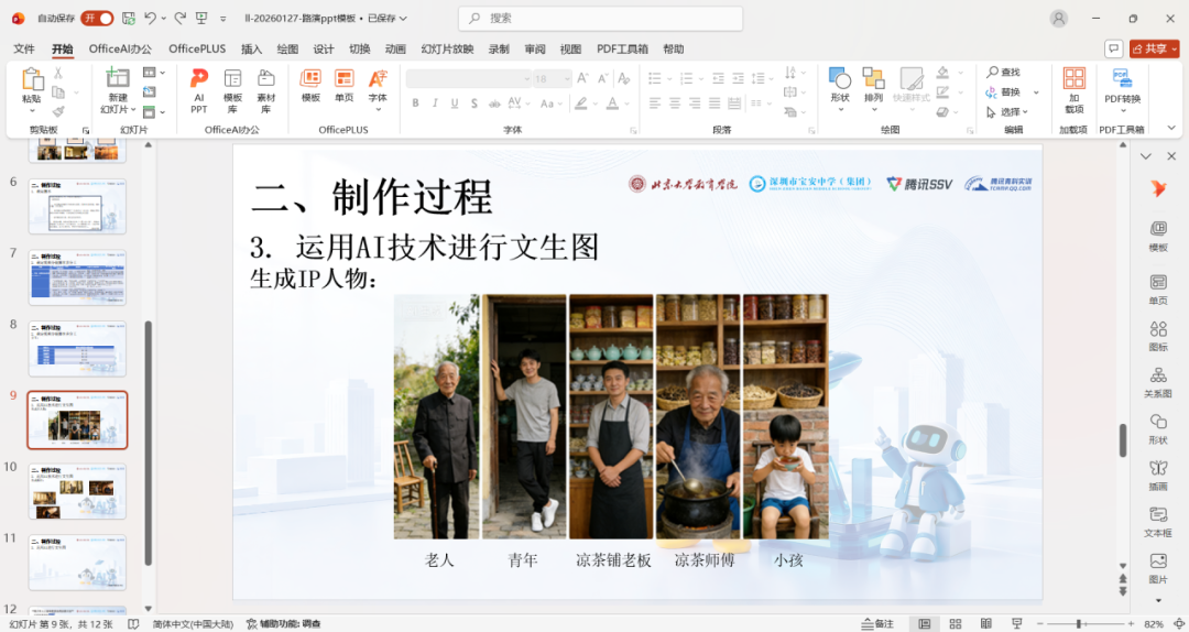 同学们以AI为桥梁,让非遗文化走出博物馆、走进数字时代,在创新表达中焕发新生。文创组的同学们将马年生肖、宝安文化、三星堆、青花瓷、篆香非遗等元素与现代设计融合,打造系列IP与文创作品;视频组的同学们用动漫与数字影像讲述粤剧、剪纸、凉茶、醒狮等岭南故事,让非遗技艺以影像形式被更多人看见;智能体组的同学们开发非遗文化、非遗手工AI机器人等作品,用交互技术实现传统文化的活态传承。