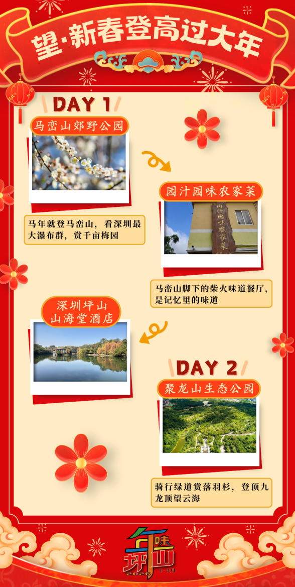 马年登马峦,新年步步高!这个新春佳节和家人一起,踏入深圳坪山的马峦山秘境,远离城市的喧嚣,感受大自然的宁静与和谐。后续将持续推出“马年登马峦”互动赢福利及全方位出行攻略,敬请期待哦!还有更多品味年味坪山的新春游玩路线,速来打卡!