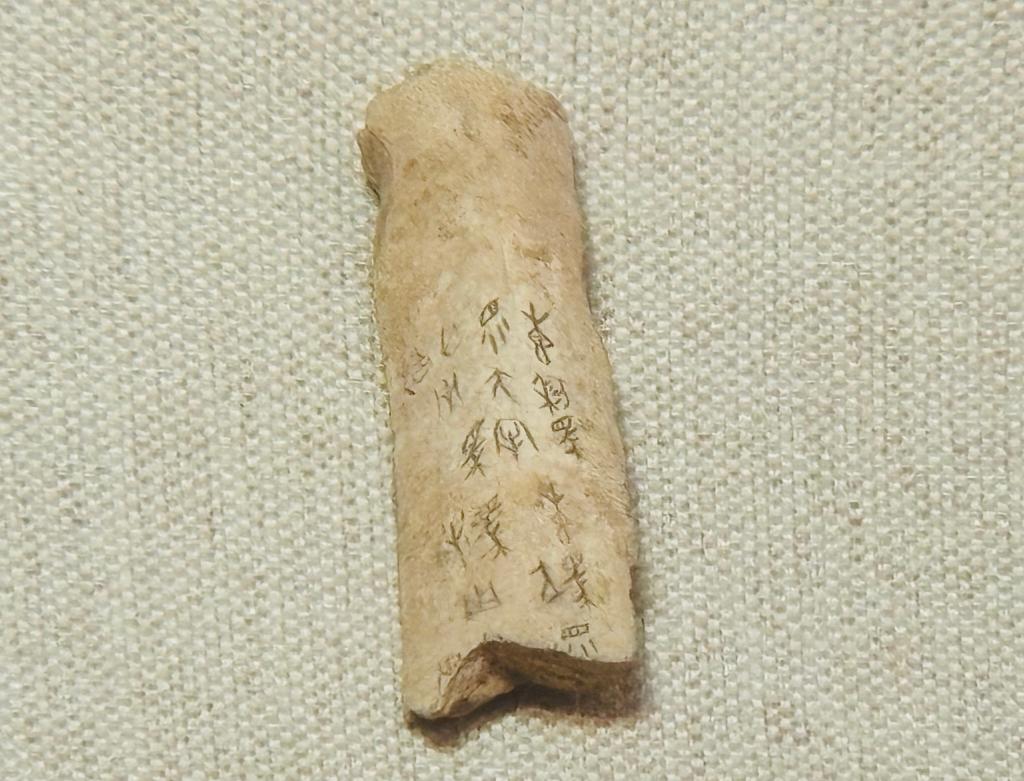 天津博物馆展出的一件商代甲骨上面有“马”字的四种不同写法。新华社记者 周润健 摄