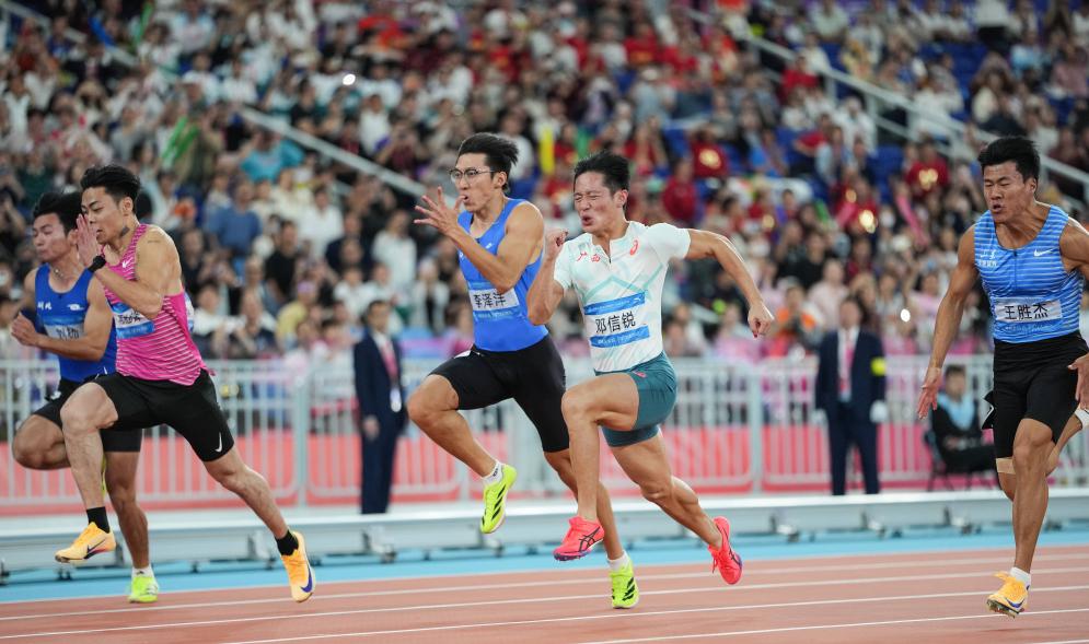 2025年邓信锐再次迎来爆发,先后刷新60米、100米的个人最好成绩。当年8月的全国田径锦标赛男子100米决赛中,他更以10秒06收获100米冠军。这一成绩不仅让他成为史上第七位突破10秒10的中国队运动员,也成为继苏炳添、谢震业和张培萌之后,并列第四快的中国百米“飞人”。