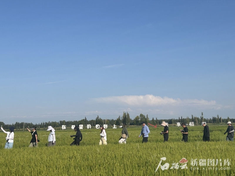 察布查尔大渠不仅带来了水稻种植业和特色水产养殖业的发展,还带动了不少创业者来察布查尔锡伯自治县纳达齐牛录乡稻田里作画。
