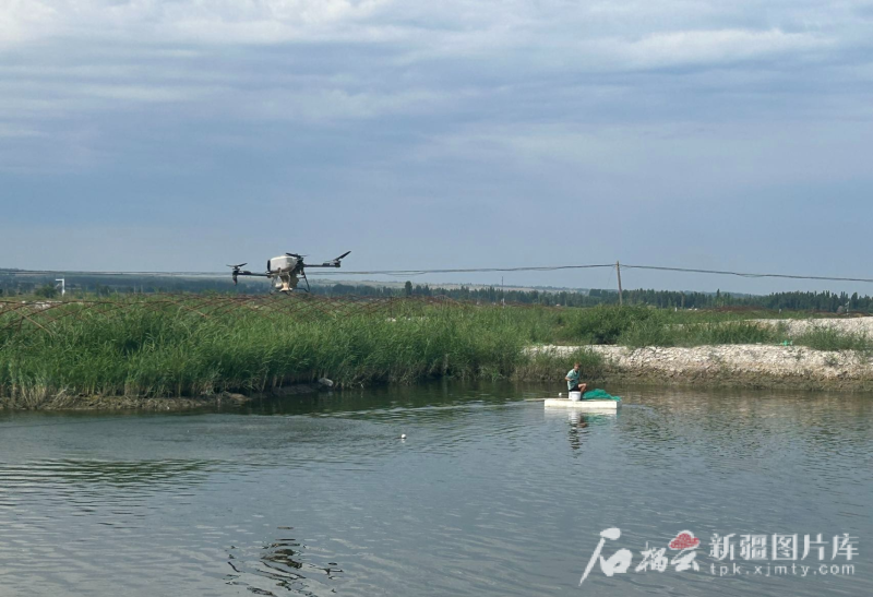 “空中投喂+水下养殖”的立体场景。石榴云/新疆日报记者宋卫国摄