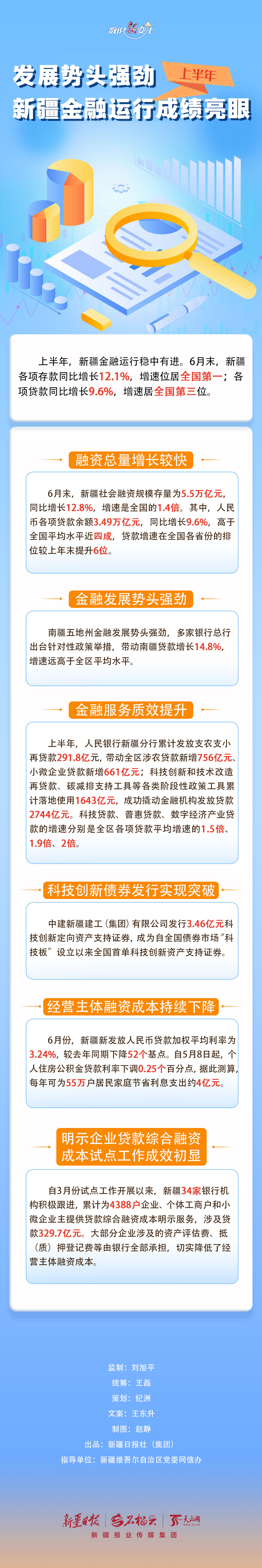 6月末,新疆各项存款同比增长12.1%,增速位居全国第一;各项贷款同比增长9.6%,增速居全国第三位。上半年,新疆金融运行成绩是如何取得的?有哪些亮点?今天的《数说“新”变化》一起来看看。