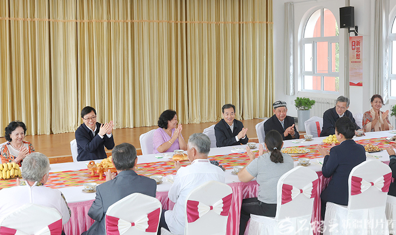 9月9日,自治区党委书记、兵团党委第一书记、第一政委陈小江来到塔城市新城街道哈尔墩社区,同正在开展邻里节活动的各族群众围坐一起拉家常。石榴云/新疆日报记者崔志坚摄