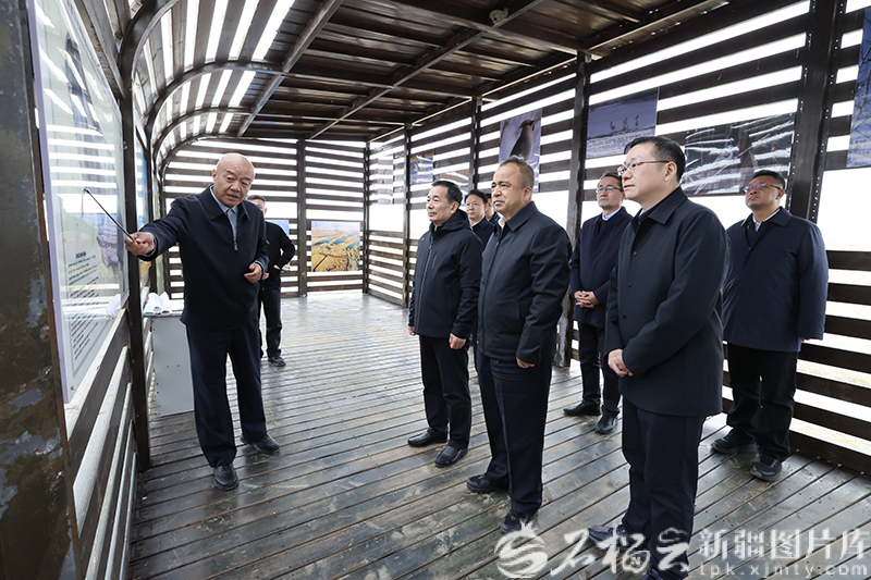 10月14日,自治区党委书记、兵团党委第一书记、第一政委陈小江,自治区党委副书记、自治区主席艾尔肯·吐尼亚孜实地察看艾比湖流域生态环境保护工作。