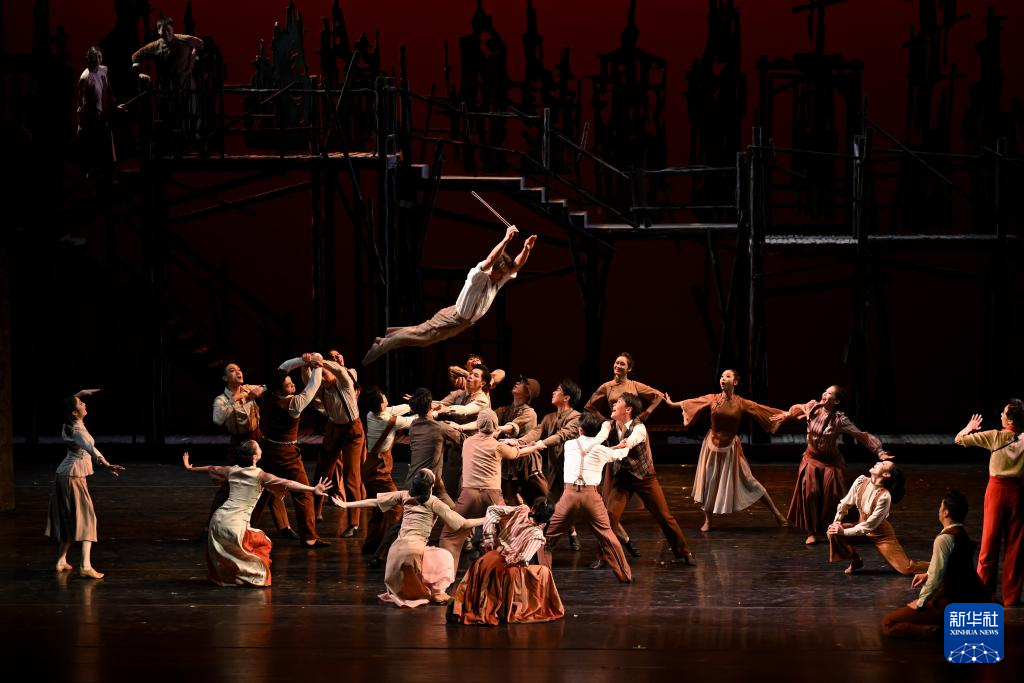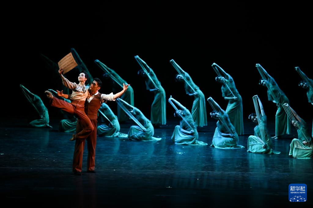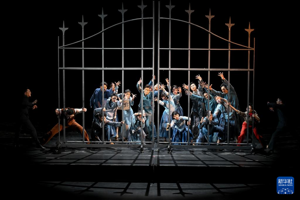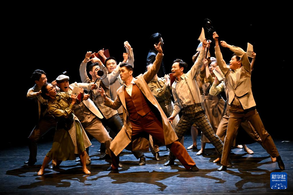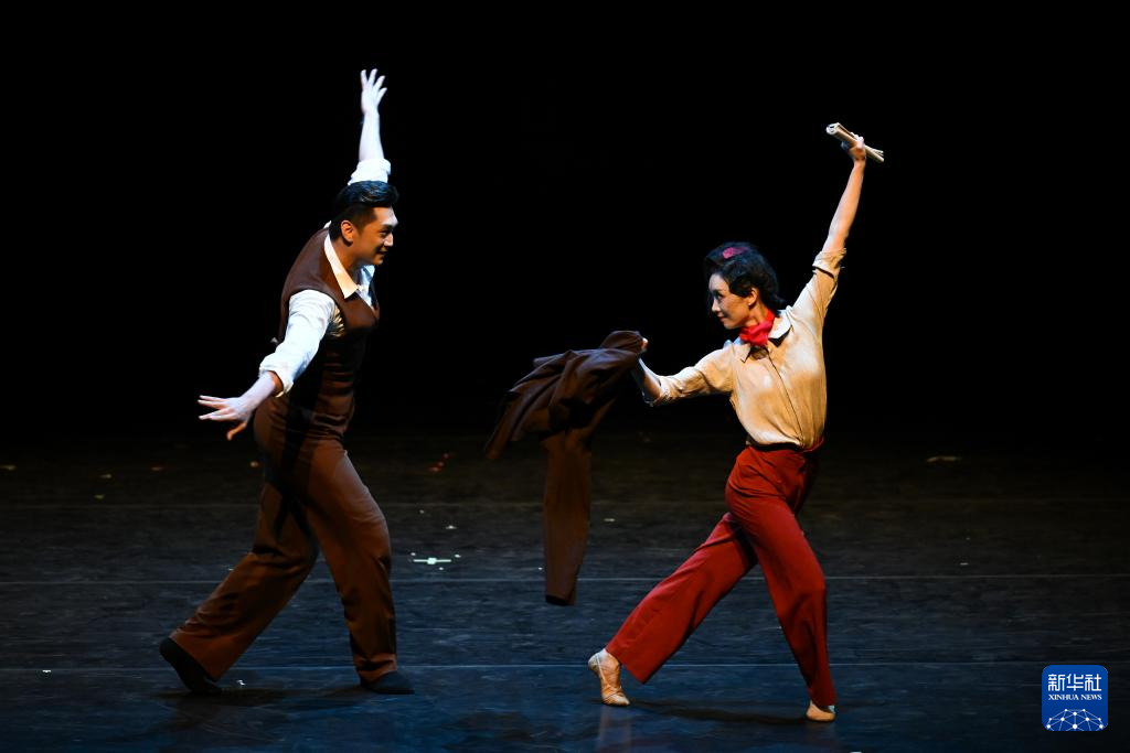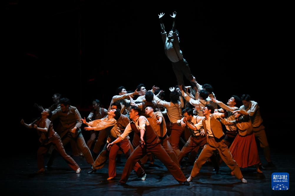10月27日,在新疆乌鲁木齐市京剧院,演员在舞剧《热血当歌》中表演。