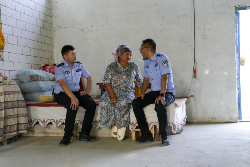 居麦·阿卜力孜走访时帮助辖区群众解决实际困难。图片由自治区公安厅提供