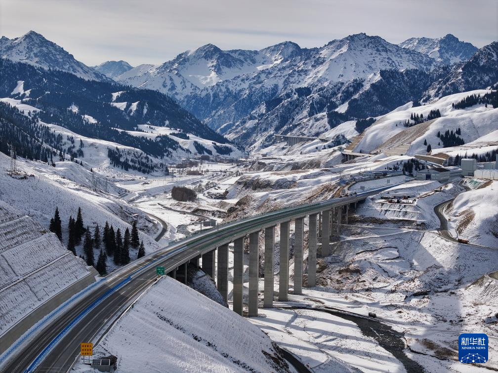 这是新疆乌尉高速公路前峡1号隧道及附近路段(12月20日摄,无人机照片)。