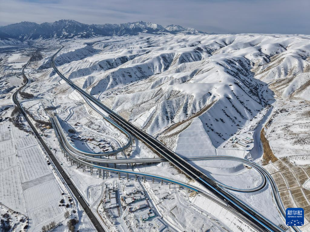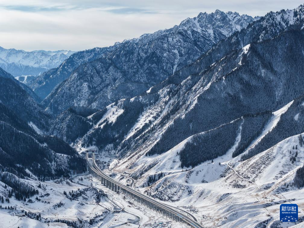 新疆乌尉高速公路蜿蜒在天山中(12月23日摄,无人机照片)。