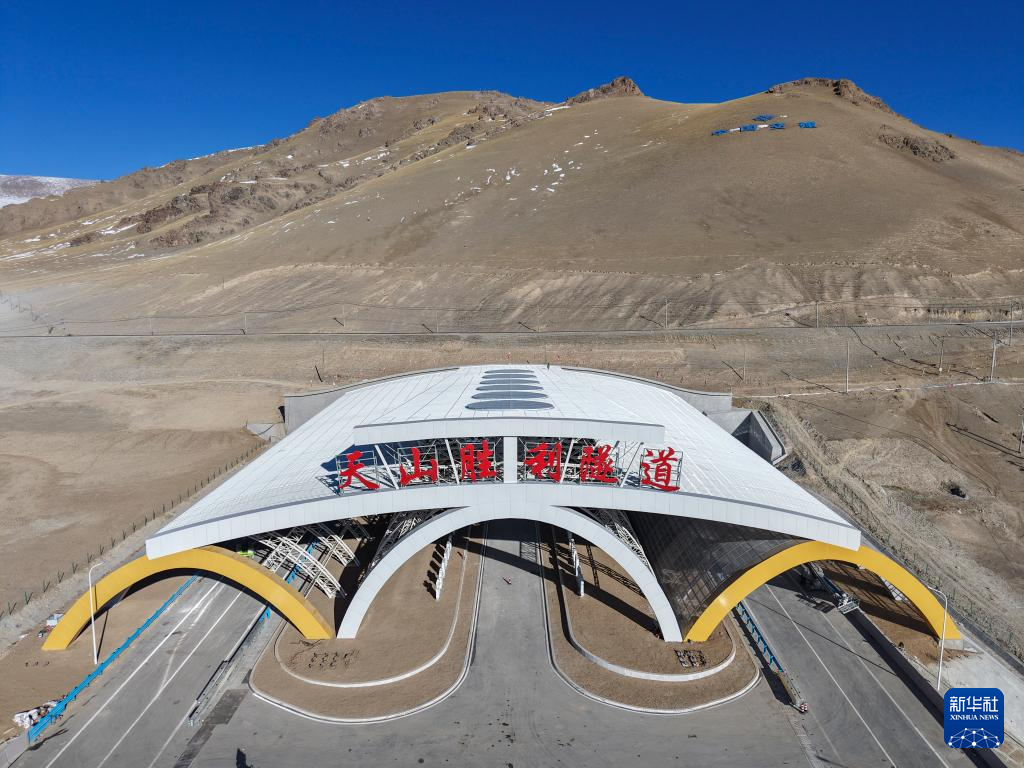 这是新疆乌尉高速公路天山胜利隧道出口端(2025年12月23日摄,无人机照片)。