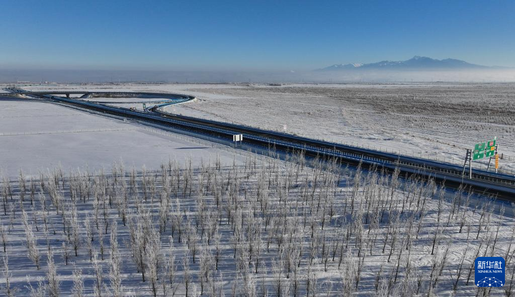在新疆乌鲁木齐县拍摄的乌尉高速公路(12月23日摄,无人机照片)。