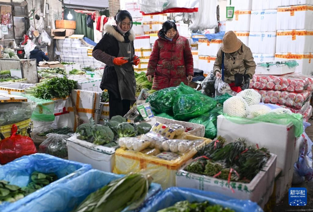 1月21日,市民在位于乌鲁木齐市沙依巴克区的凌庆蔬菜批发市场选购蔬菜。