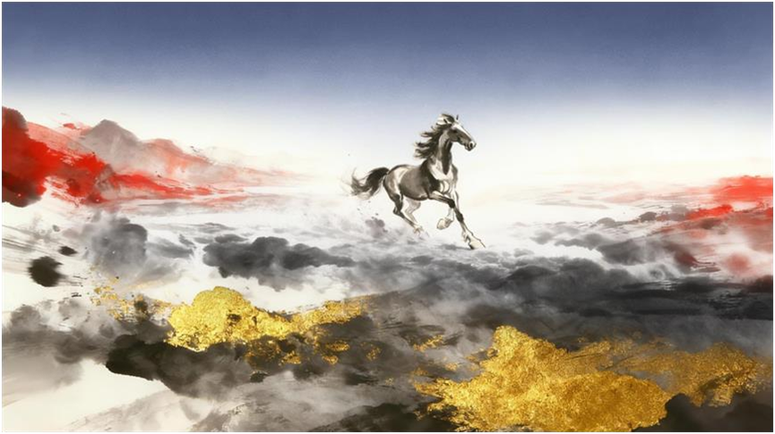 2026新疆国际春晚让徐悲鸿的水墨骏马在数字空间中驰骋,传统水墨画从二维平面的“档案”转化为可交互、可沉浸的媒介情境。破壁而出的骏马,以数字笔法完成了“龙马精神”的当代转译,天山昆仑的地理文化坐标则与金色浪潮所承载的丝路贸易的繁华历史相互映衬,使水墨奔马的现代性意义与地域性的历史维度在此刻交汇,完成了一场全球共观、可感、可参与的春节仪式的隆重开篇。