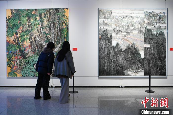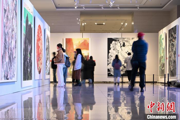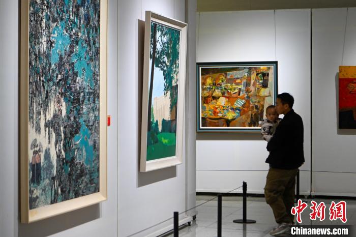 12月2日,展出作品《西部之光·万家灯火》吸引观众。当日,庆祝中华人民共和国成立75周年云南美术作品展在位于昆明市的云南文学艺术馆开展,280余件作品展示云南人民踔厉奋发创造美好生活的精神风貌。中新社记者李嘉娴 摄