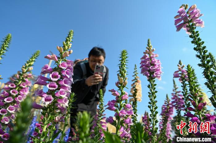 2月20日,游客拍摄盛开的毛地黄。近日,位于云南省昆明市的海洪莫奈花园正式向公众开放。花园以“四季花海”为景观特色,以“幸福包容”为主题氛围,吸引不少市民、游客前来观赏打卡。中新社记者李嘉娴 摄