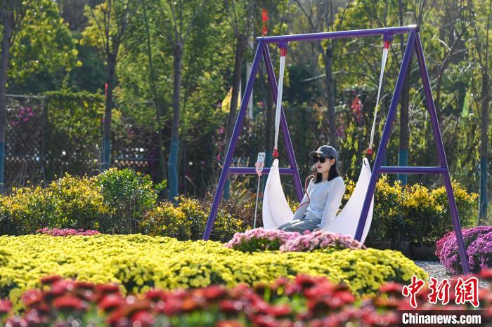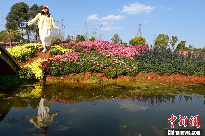 2月20日,游客畅游花海。近日,位于云南省昆明市的海洪莫奈花园正式向公众开放。花园以“四季花海”为景观特色,以“幸福包容”为主题氛围,吸引不少市民、游客前来观赏打卡。中新社记者李嘉娴 摄