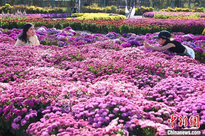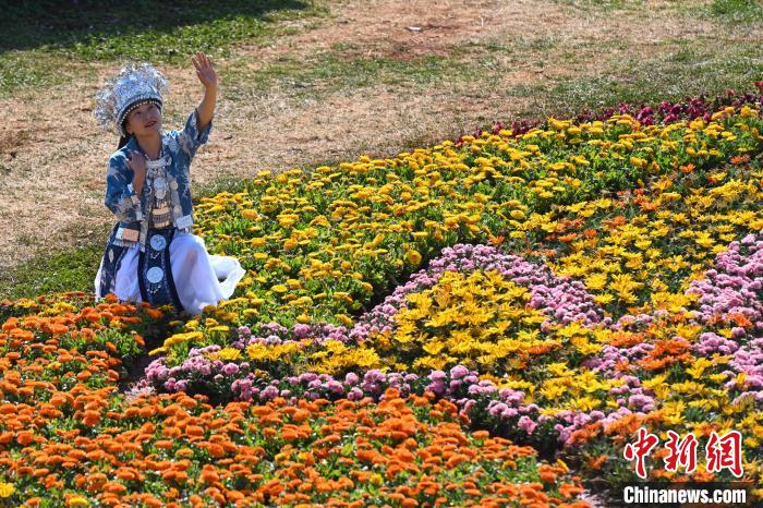 2月20日,游客在花海中拍照打卡。近日,位于云南省昆明市的海洪莫奈花园正式向公众开放。花园以“四季花海”为景观特色,以“幸福包容”为主题氛围,吸引不少市民、游客前来观赏打卡。中新社记者李嘉娴 摄