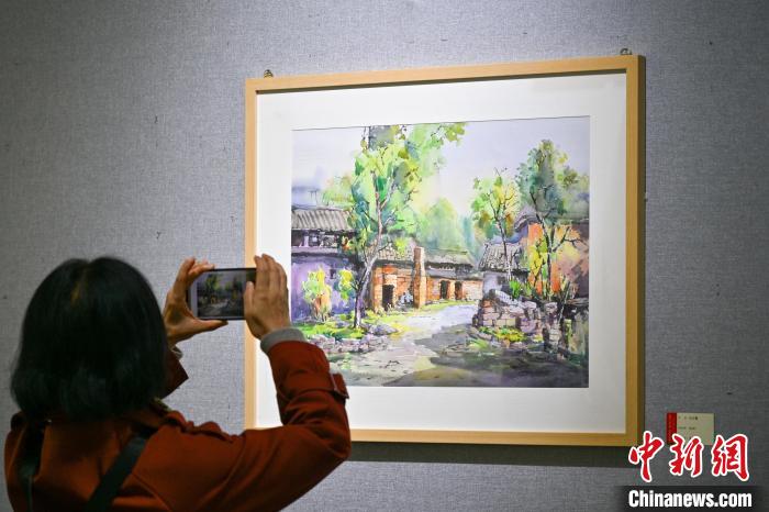 3月10日,云南昆明,观众拍摄展出的水彩作品《秋末》。中新社记者 李嘉娴 摄