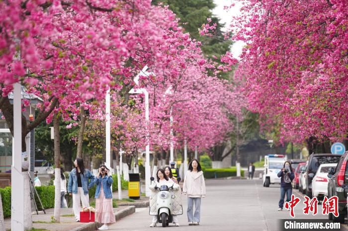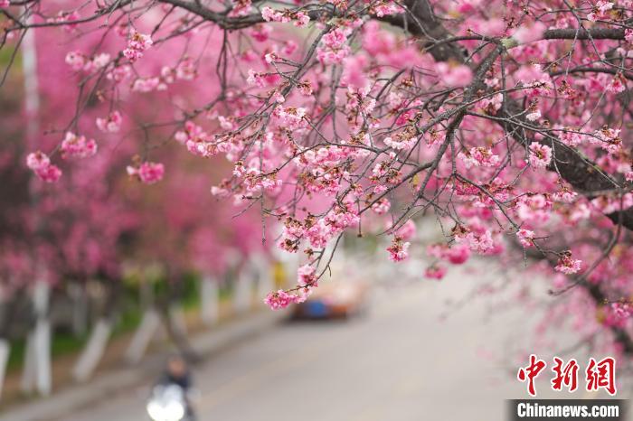 3月18日,校园里盛开的樱花。近日,位于云南省大理市的大理大学迎来一年一度的樱花季,绽放的樱花把校园妆点成苍山洱海间动人的春日胜景。中新社记者刘冉阳 摄