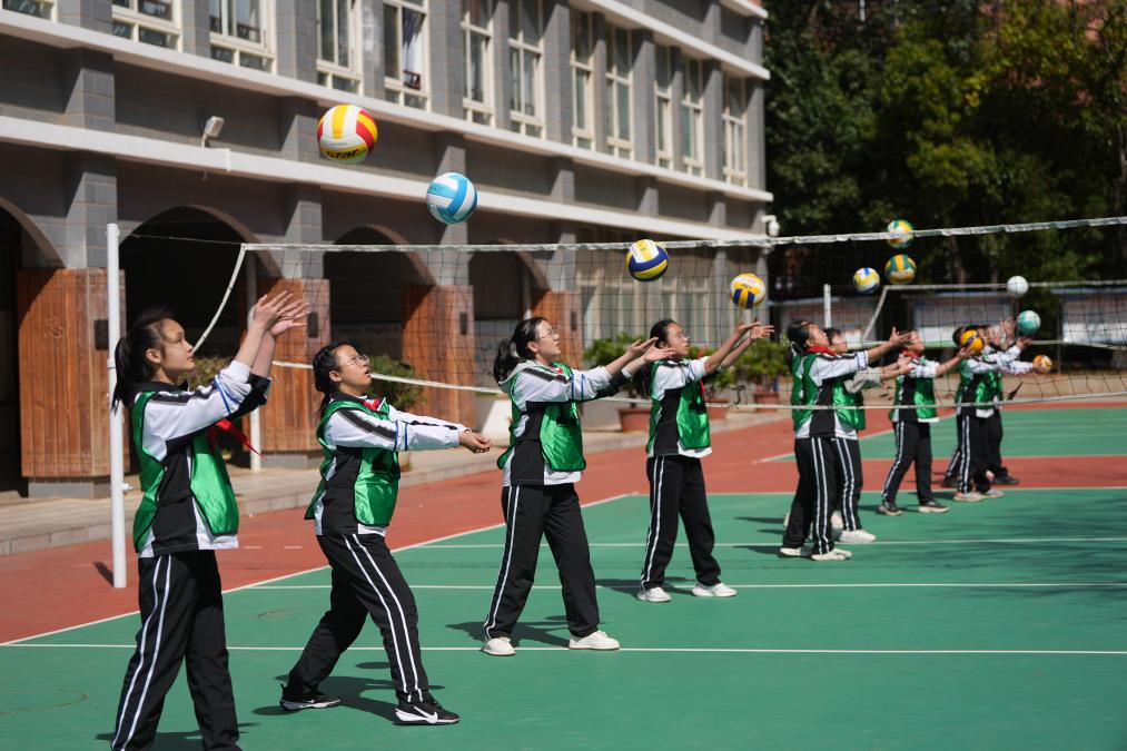 2025年2月28日,昆明市云南大学附属中学学生在校园里练习排球。新华社记者 陈欣波 摄