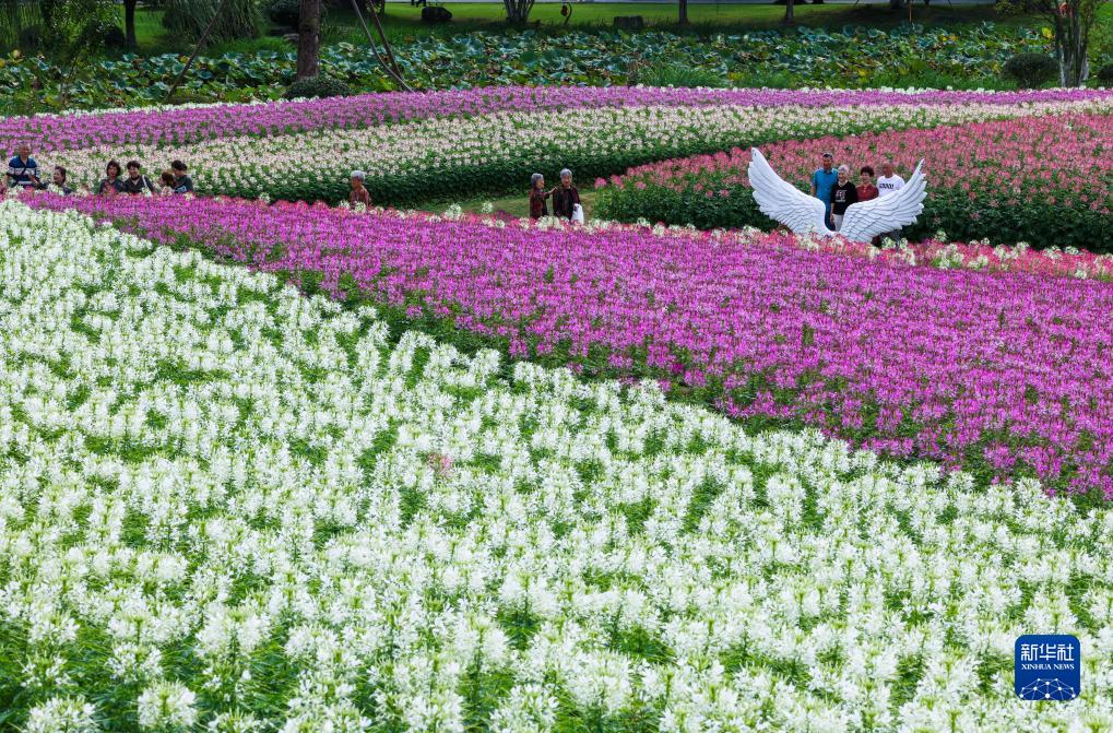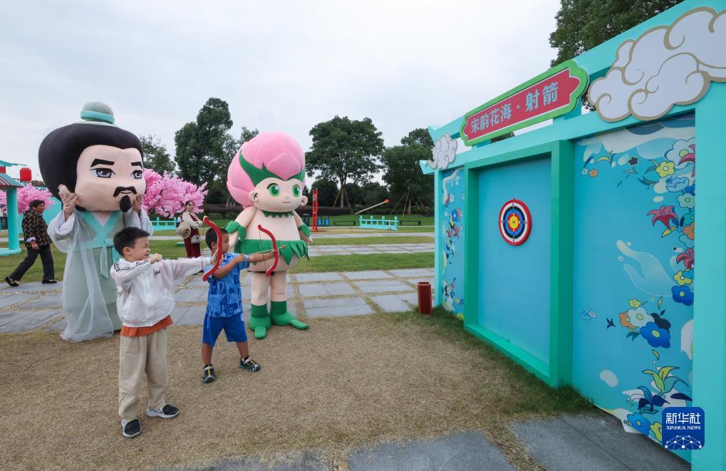 中秋国庆长假期间,浙江省杭州市余杭区径山镇径山花海拾花节暨宋韵游园会开启。市民游客徜徉在近千亩的径山花海中,观赏绚烂的秋日美景,体验融入宋韵文化内涵的蹴鞠、射箭、投壶等的休闲运动。