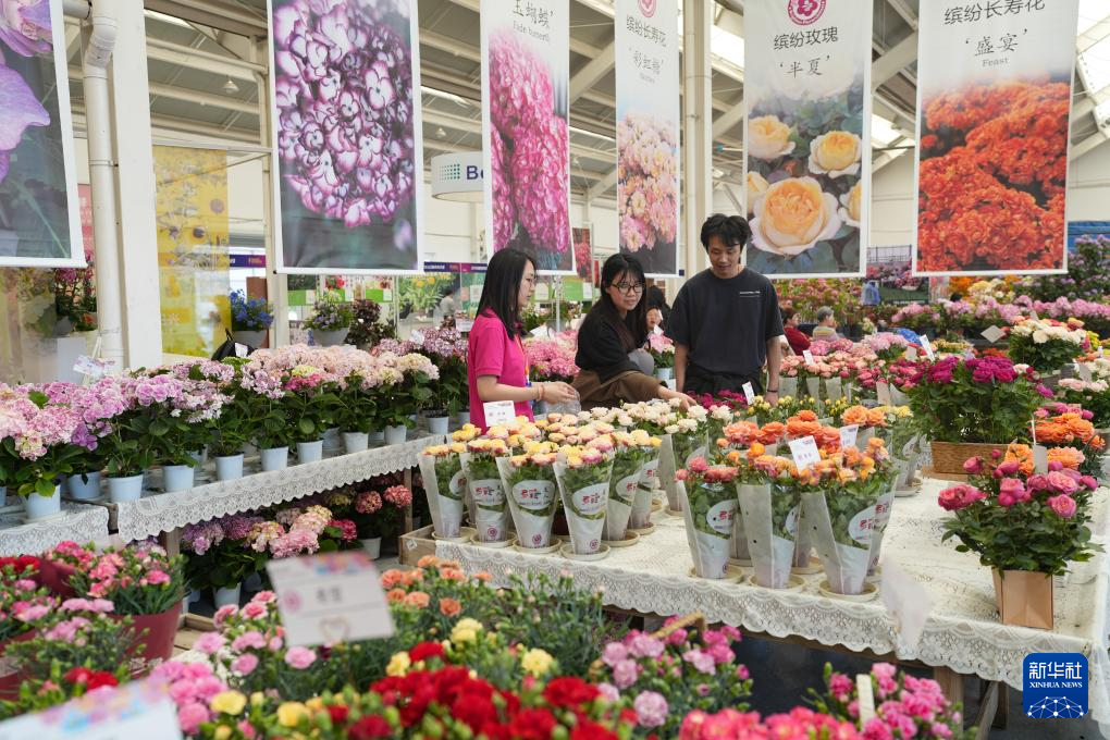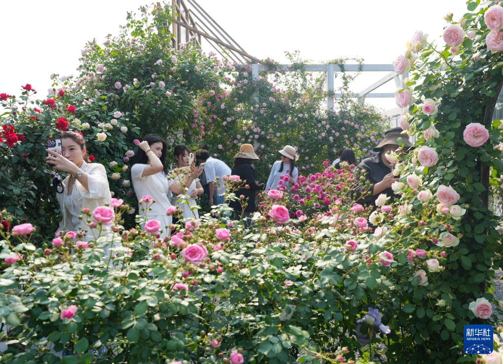 4月28日,人们在花园大会月季展区参观。