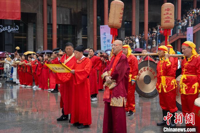 5月5日,送春迎夏仪式。当日,第十四届“中国二十四节气·人类非遗半山立夏”民俗活动在杭州市拱墅区举行,非遗巡游嘉年华、非遗花伞市集等活动吸引众多游人。中新社记者吴君毅 摄
