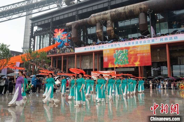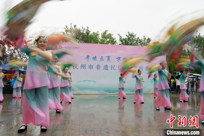 5月5日,舞蹈队伍进行节目表演。当日,第十四届“中国二十四节气·人类非遗半山立夏”民俗活动在杭州市拱墅区举行,非遗巡游嘉年华、非遗花伞市集等活动吸引众多游人。中新社记者吴君毅 摄