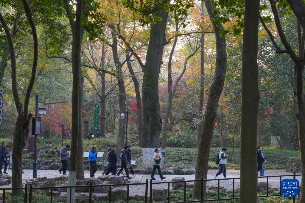12月1日,首批免票游客在灵隐飞来峰景区游览。
